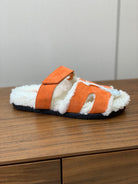 HM Chypre Sandal In Orange Mix White Fleece And Suede 984196