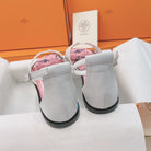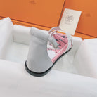 HM Flat Sandals White Pink Cowhide 348049