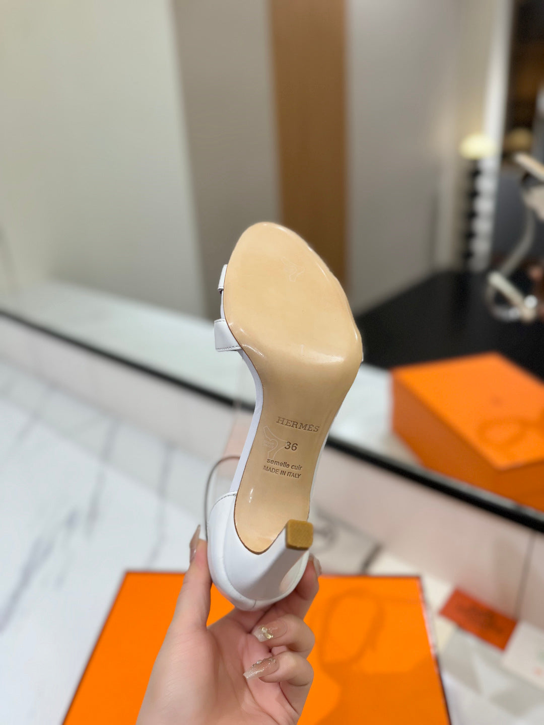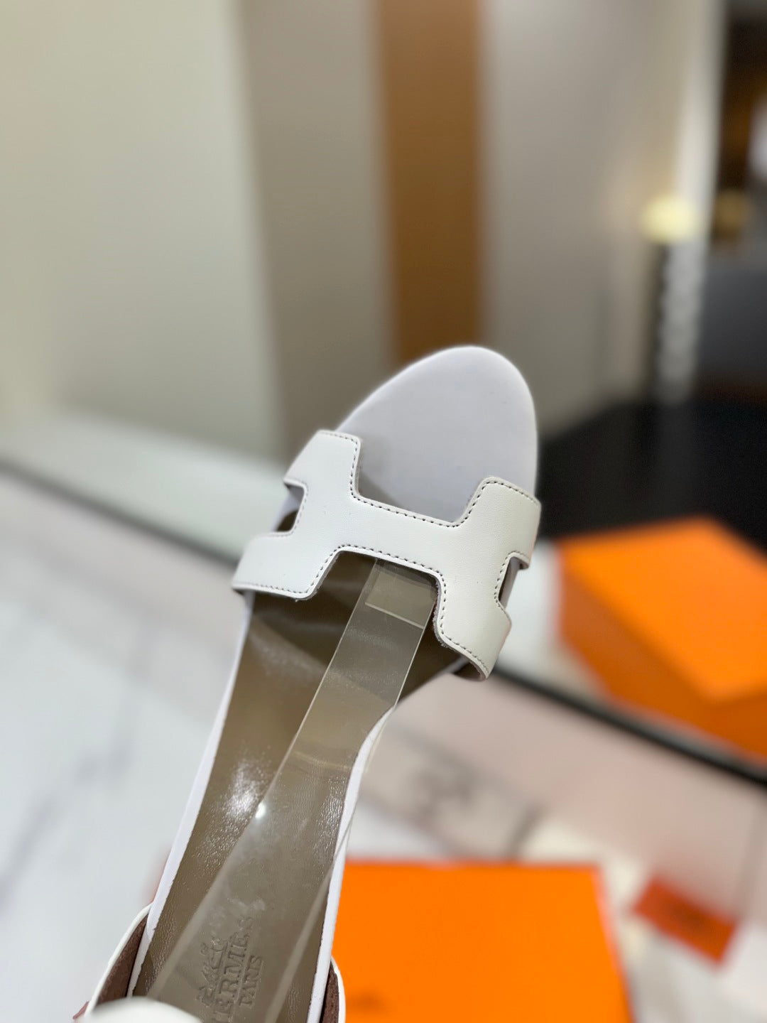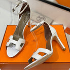 HM Joy 90mm Heeled Sandals White Flat Cowhide 294916