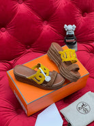 HM Lthea Espadrille Brown Chocolate Mix Yellow Suede And Jute Rope 969492