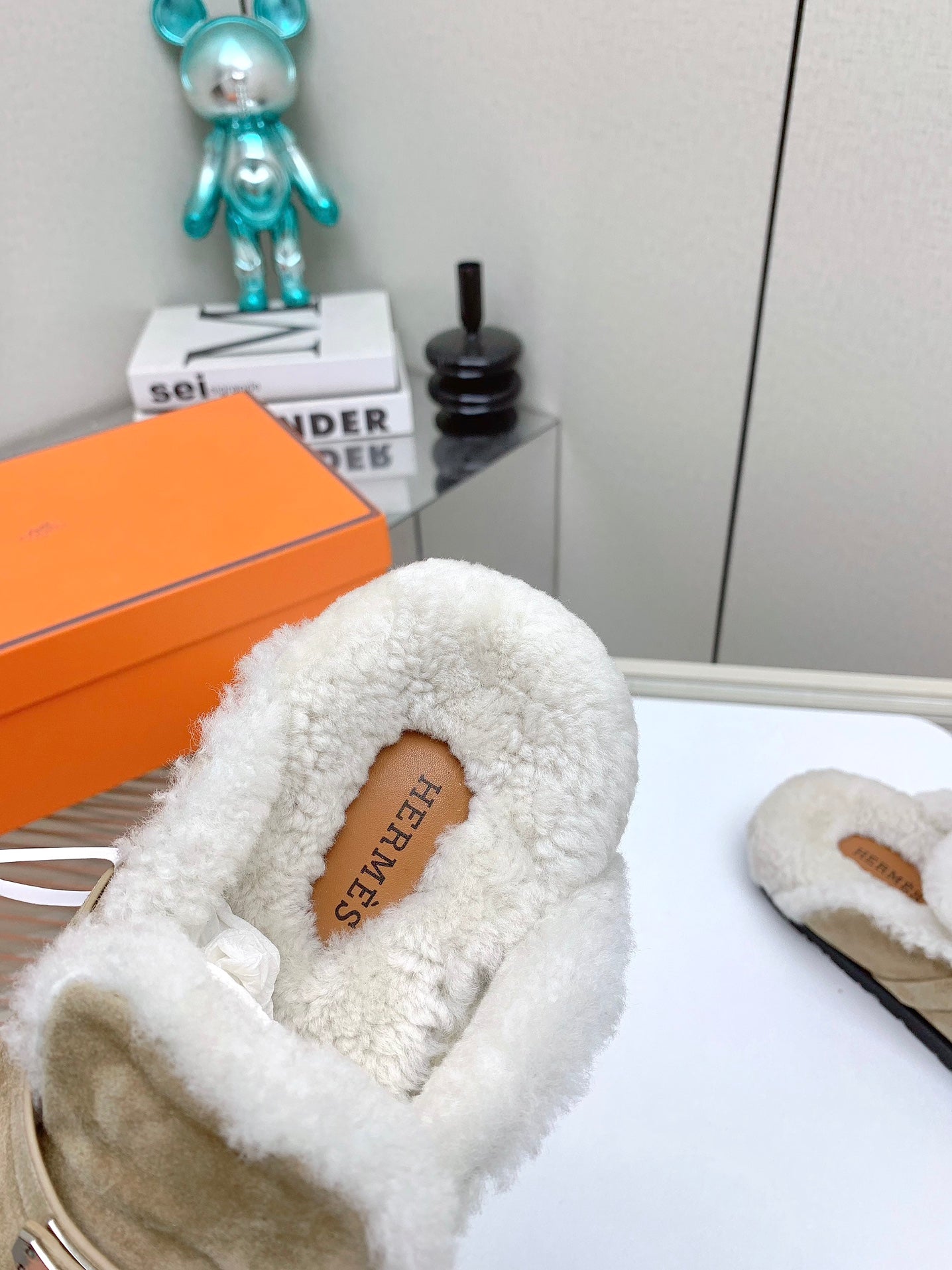 HM Mule 30mm In Light Brown Beige With Fleece And Suede Lining 971396