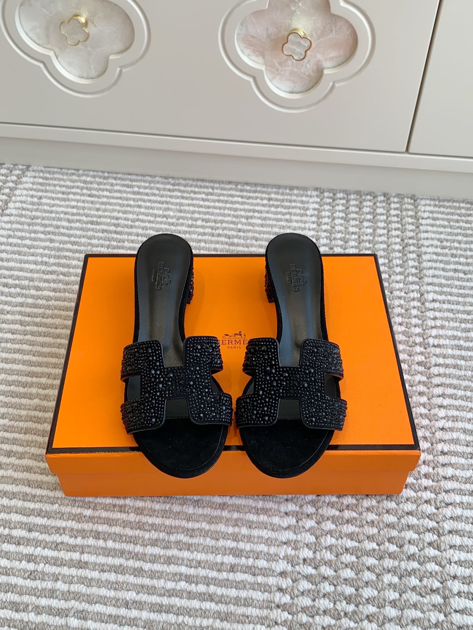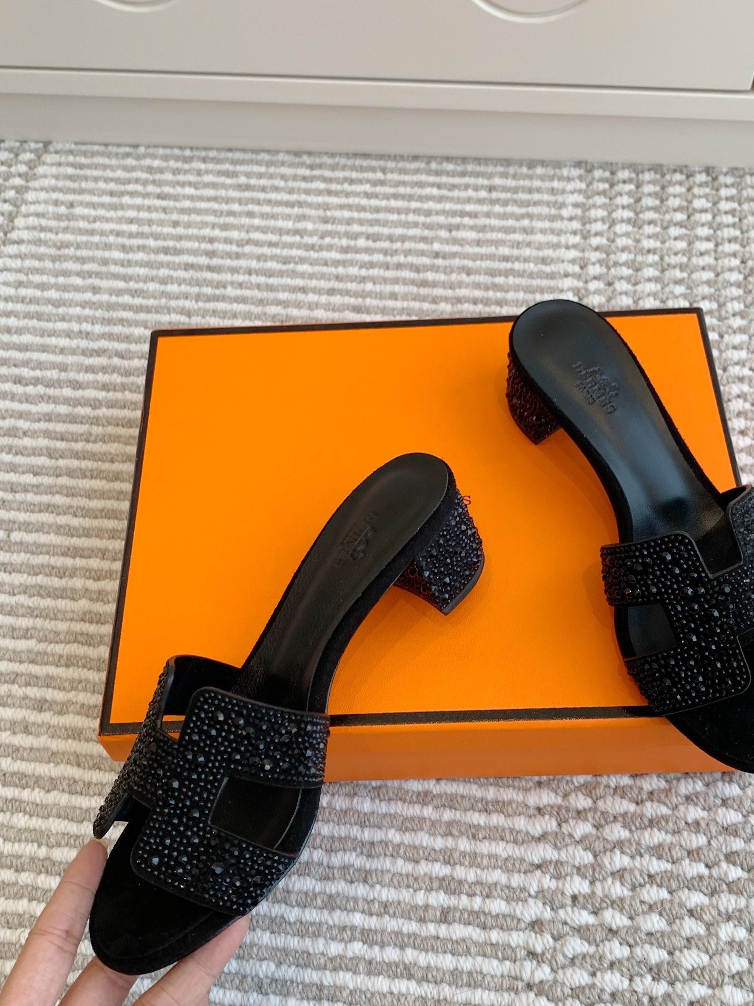 HM Oasis Sandal 50mm Black Suede Goatskin 291392