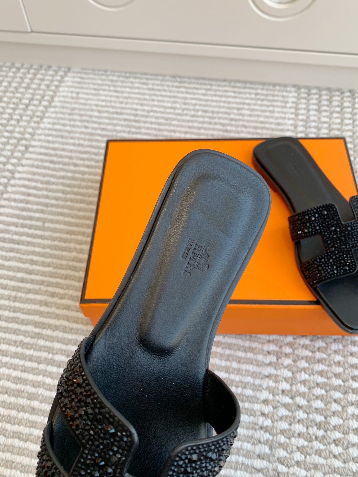 HM Oran Rhinestone Sandals Black Suede Goatskin 291391