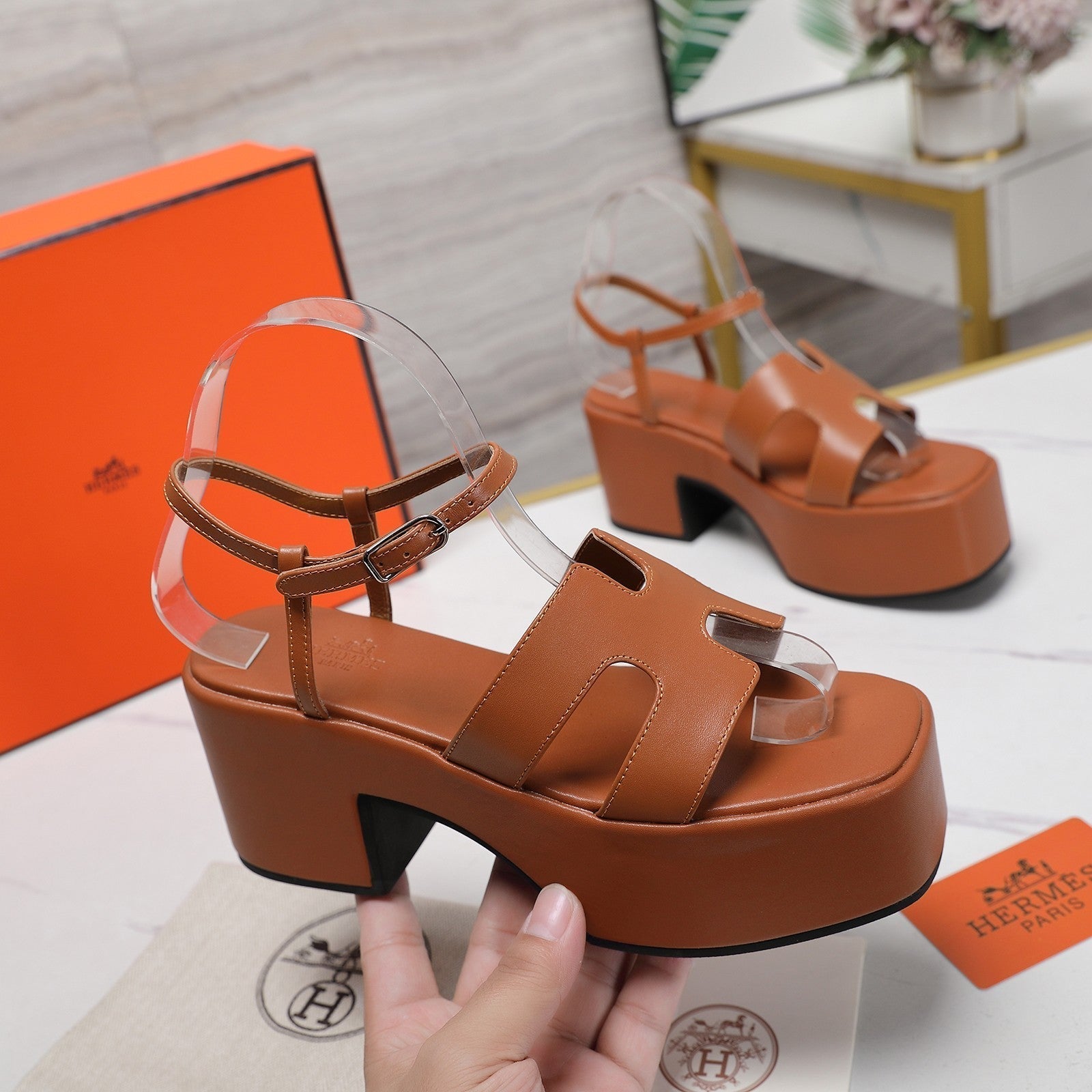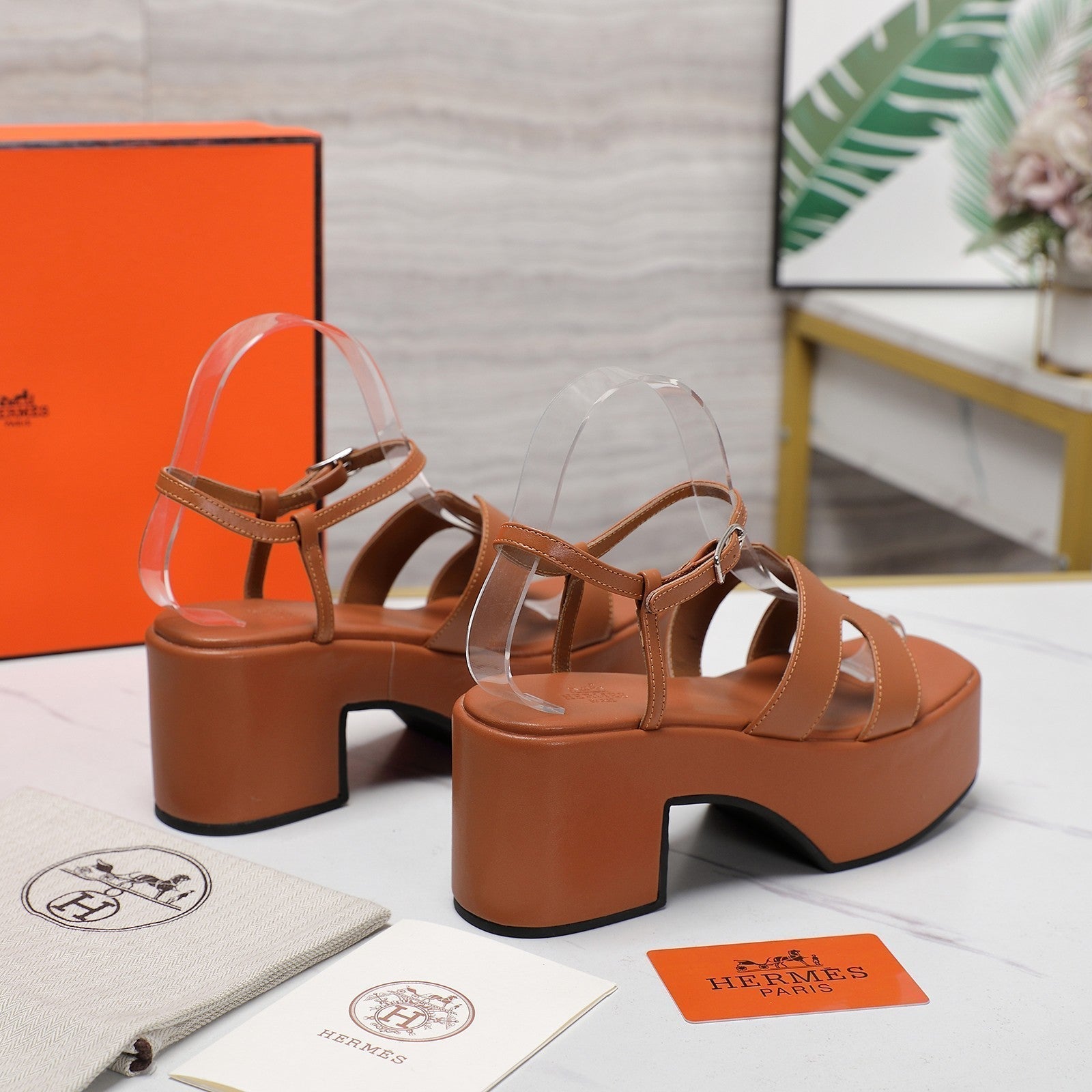 HM 25 Oran Sandal Brown Calfskin White Thread Embroidery