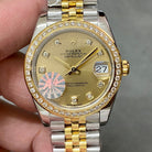 DATEJUST 31MM GOLD STEEL DIAMOND BEZEL YELLOW DIAL