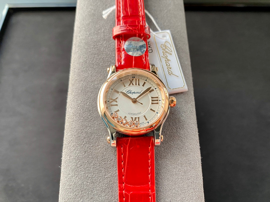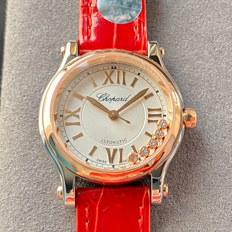 Happy Diamonds 36mm Pink Gold White Dial