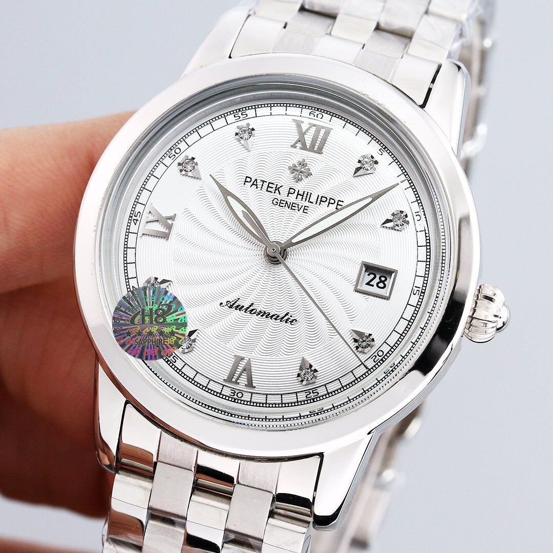 PATEK CALATRAVA 40MM WHITE DIAL DIAMOND BEZEL