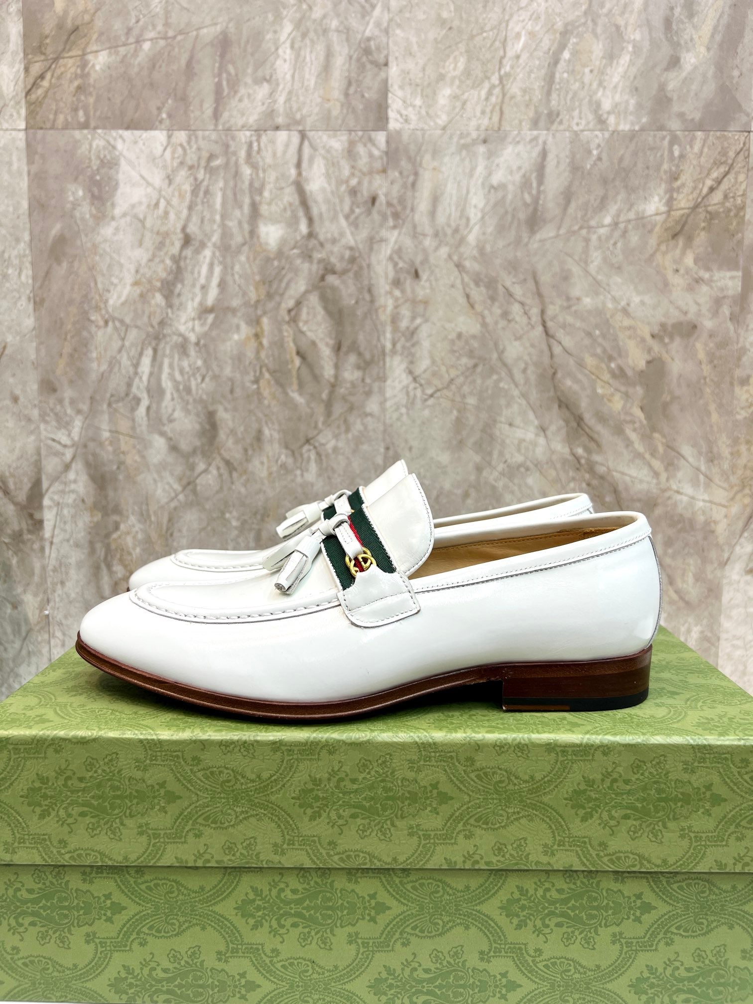 GG Men's Tassel Loafer White Cowhide 548746