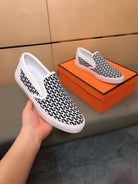 HM Men's Loafer White Black Printed Fabrics Rubber 590008