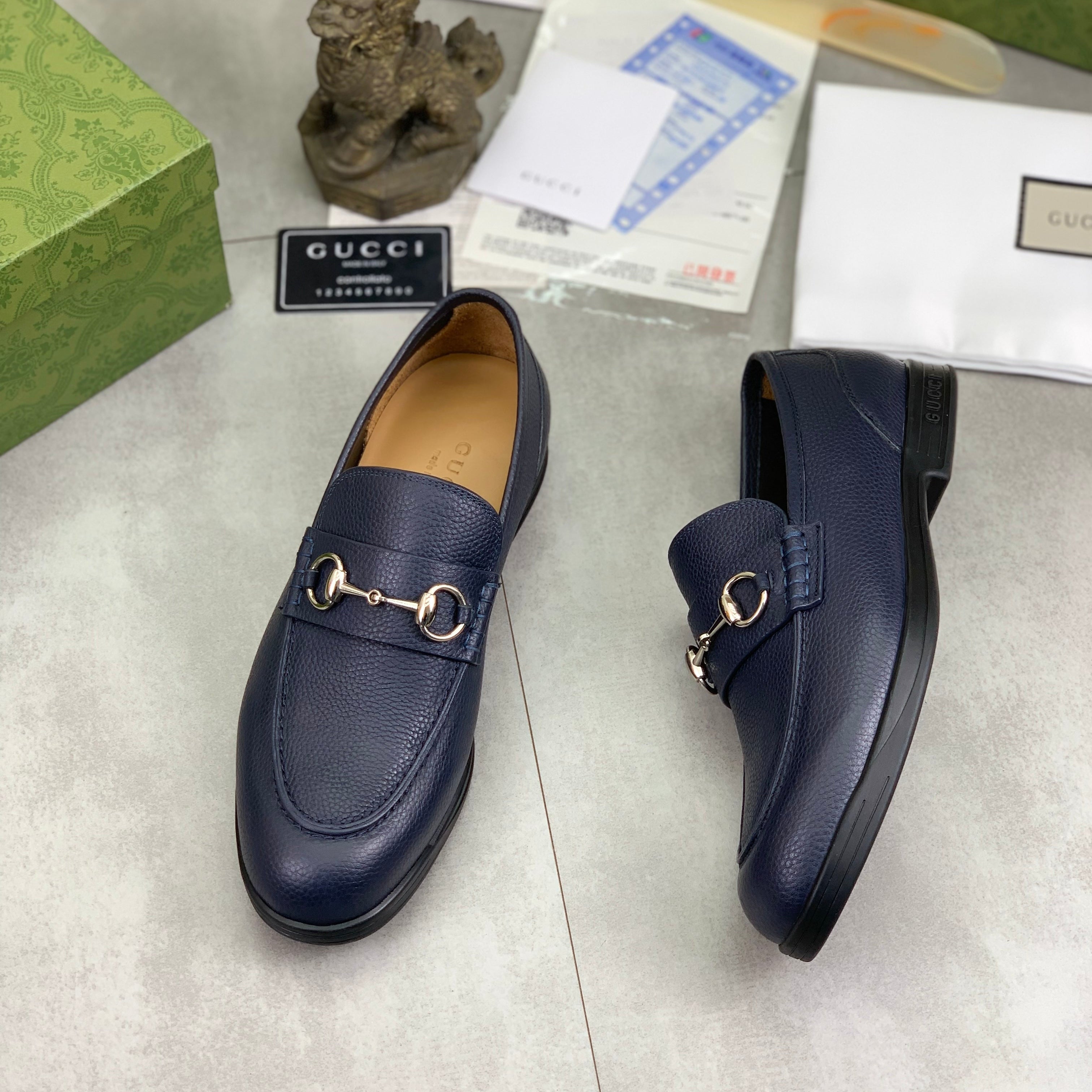 GG Men's Horsebit Loafer Navy Blue Silver Cowhide 524771