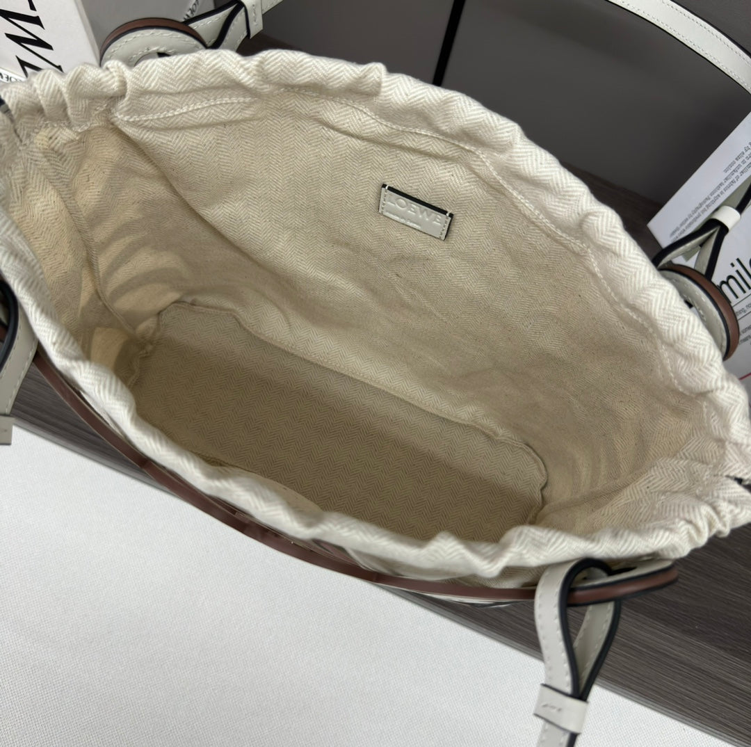 LOE 32 ANAGRAM CUT-OUT CROSSBODY IN WHITE CLASSIC CALFSKIN AND CANVAS