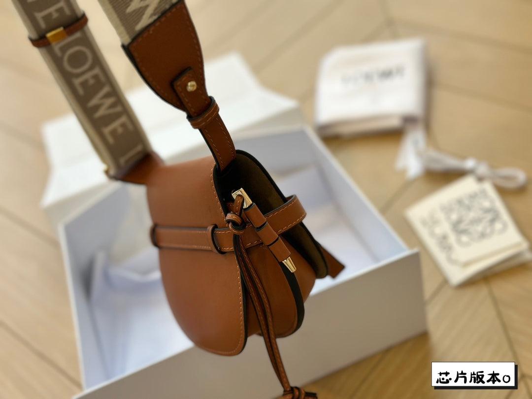 LOE MINI 18 GATE DUAL BAG IN TAN SOFT CALFSKIN AND JACQUARD