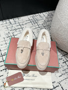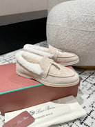 LP Summer Charms Walk Loafers In Light Beige Mix White Suede With Rabbit Fur Lining 985650