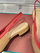 LP Rebecca Slingbacks In Mustard Brown Mix Red Cotton Fabric And Lambskin 989414