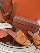 Summer Charms Sandals in Red-Orange Suede Maroon Lambskin
