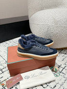 LP Tennis Walk Sneaker In Charcoal Blue Lambskin Lined With Wool Fleece 985658