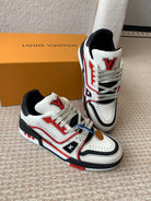 LV Trainer Sneaker White Mix Red Black Cowhide