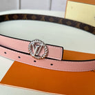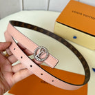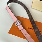 LV Circle Nautical 20mm Reversible Belt Silver Buckle Pink Brown Lambskin