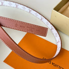 LV Circle Nautical 20mm Reversible Square End Tip Belt Silver Buckle Tan White lambskin