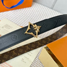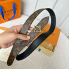 LV FLOWERGRAM 30MM REVERSIBLE BELT IN BLACK EMBOSSED CALFSKIN GOLD HARDWARE