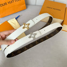 LV Flowergram 30mm Reversible Belt Silver Buckle White Brown Leather