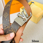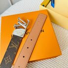 LV Initiales 30mm Reversible Belt Silver Rotating Buckle Tan Brown Leather