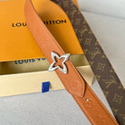LV MINI FLOWERGRAM 30MM REVERSIBLE BELT IN BRONZE BROWN EMBOSSED CALFSKIN SILVER HARDWARE