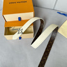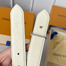 LV MINI FLOWERGRAM 30MM REVERSIBLE BELT IN WHITE EMBOSSED CALFSKIN SILVER HARDWARE