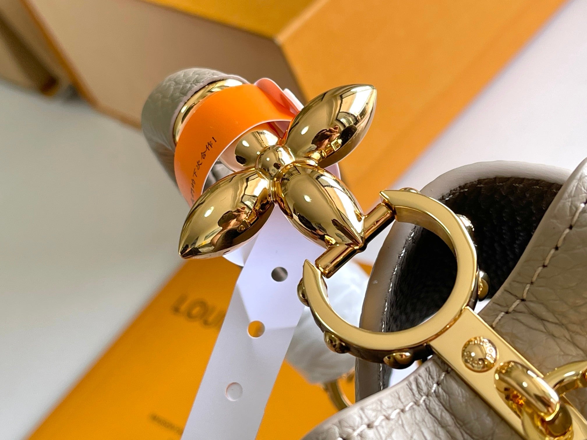 CAPUCINES MINI 21 DARK BEIGE TAURILLON GOLD HARDWARE