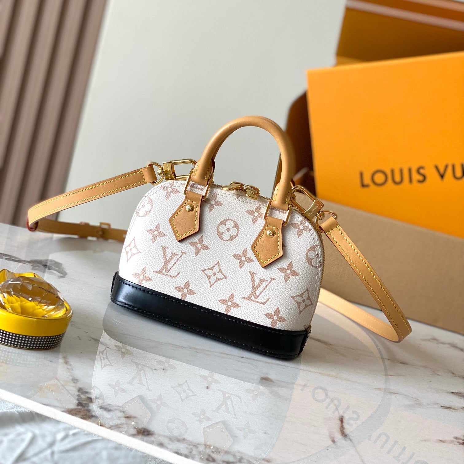 NANO ALMA 18 IN WHITE MONOGRAM DUNE CANVAS GOLD HARDWARE