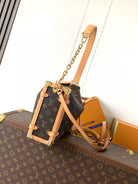LV Side Trunk Bag 30cm Brown Beige Canvas Cowhide