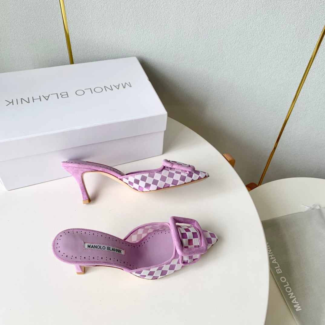 Manolo Mules 7cm Purple Fabric Leather 528012