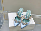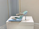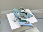 Manolo Mules Crystal Blue Silk Satin 219380