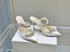 Manolo Mules Crystal White Silk Satin 219381