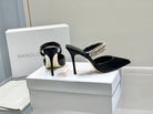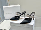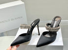 Manolo Mules Diamond Buckle Black Silk Satin 218812