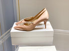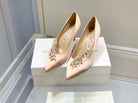 Manolo Wheat Ear Rhinestone High Heels Pumps Pink Nude Silk Fabric 327451