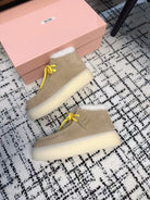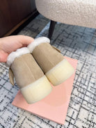 Miu Ankle Boots Light Brown Fleece Lining Cow Suede