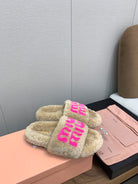 Miu slippers Light Brown With Pink Lettering Pure Wool