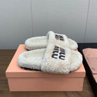 Miu Slippers Retro White With Brown Lettering Pure Wool