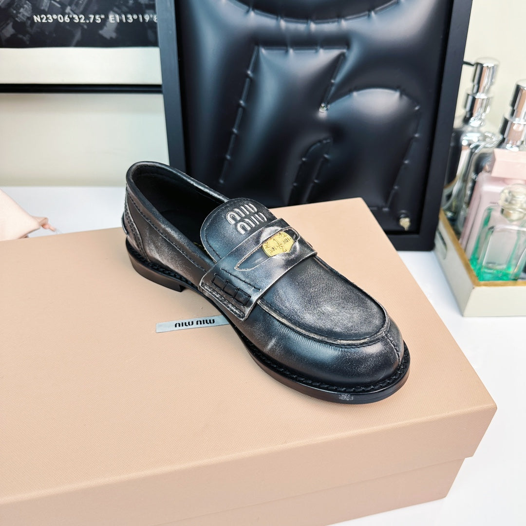 Miu Loafers Coin Shaped Thick Sole Glossy Black Cowhide