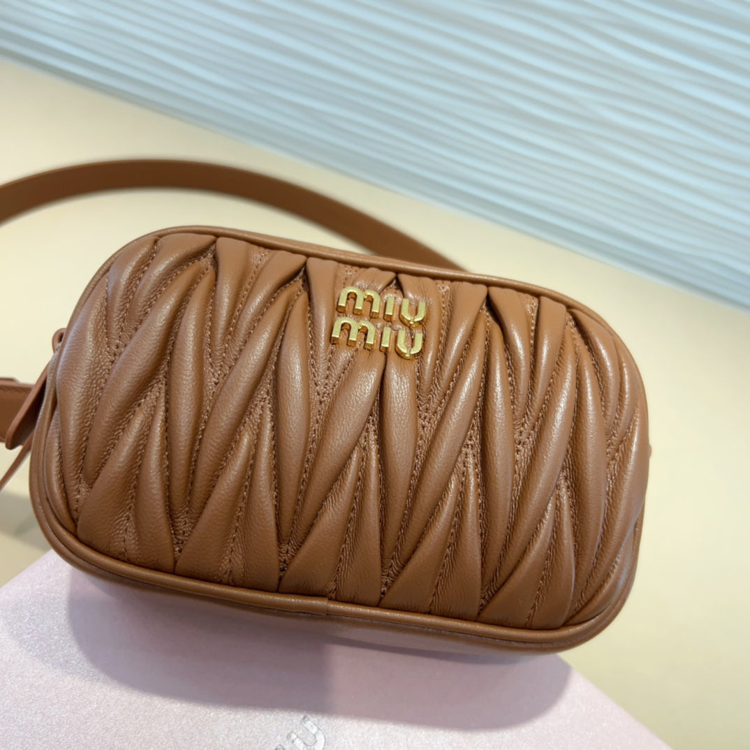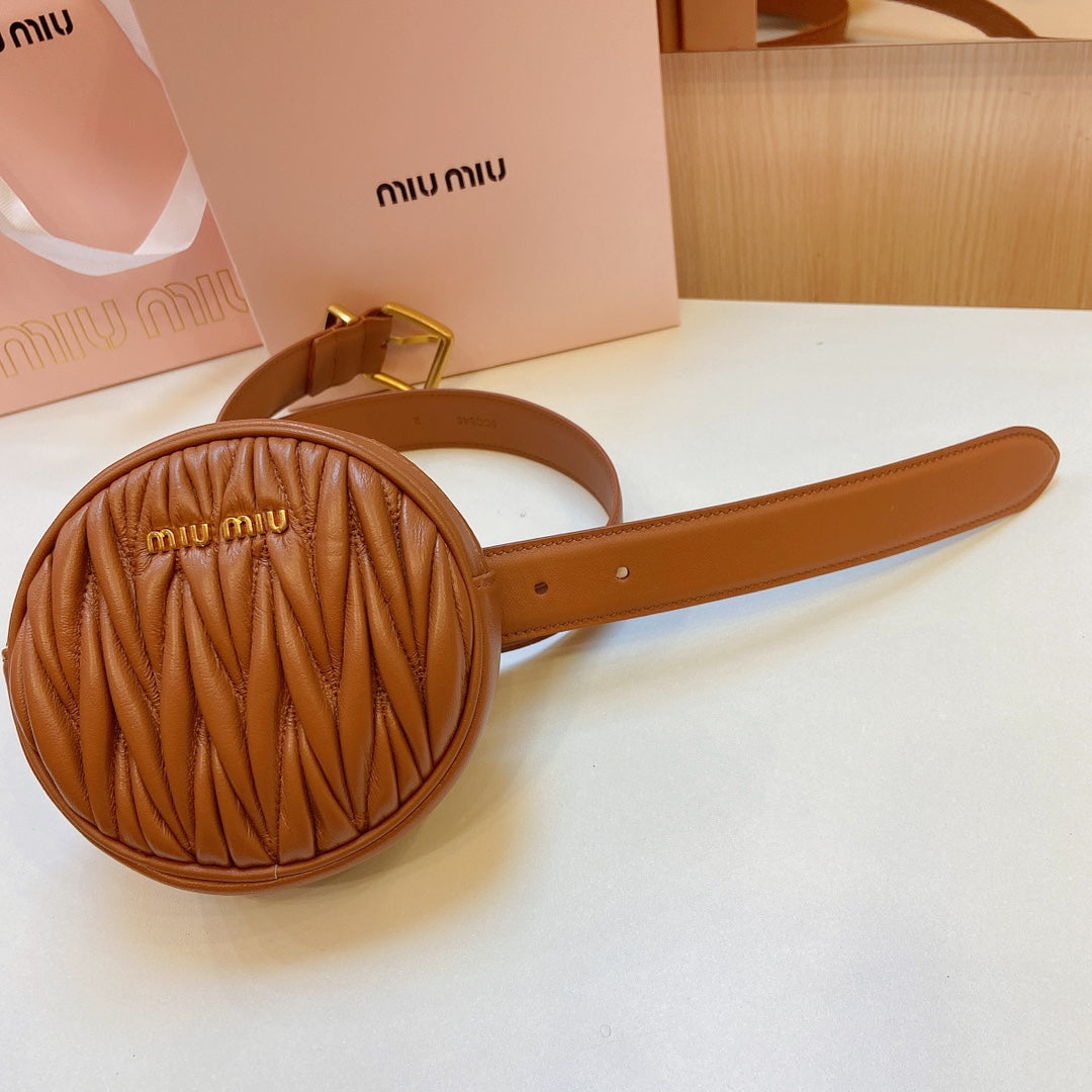 miu brown belt 20mm with circle matelasse bag