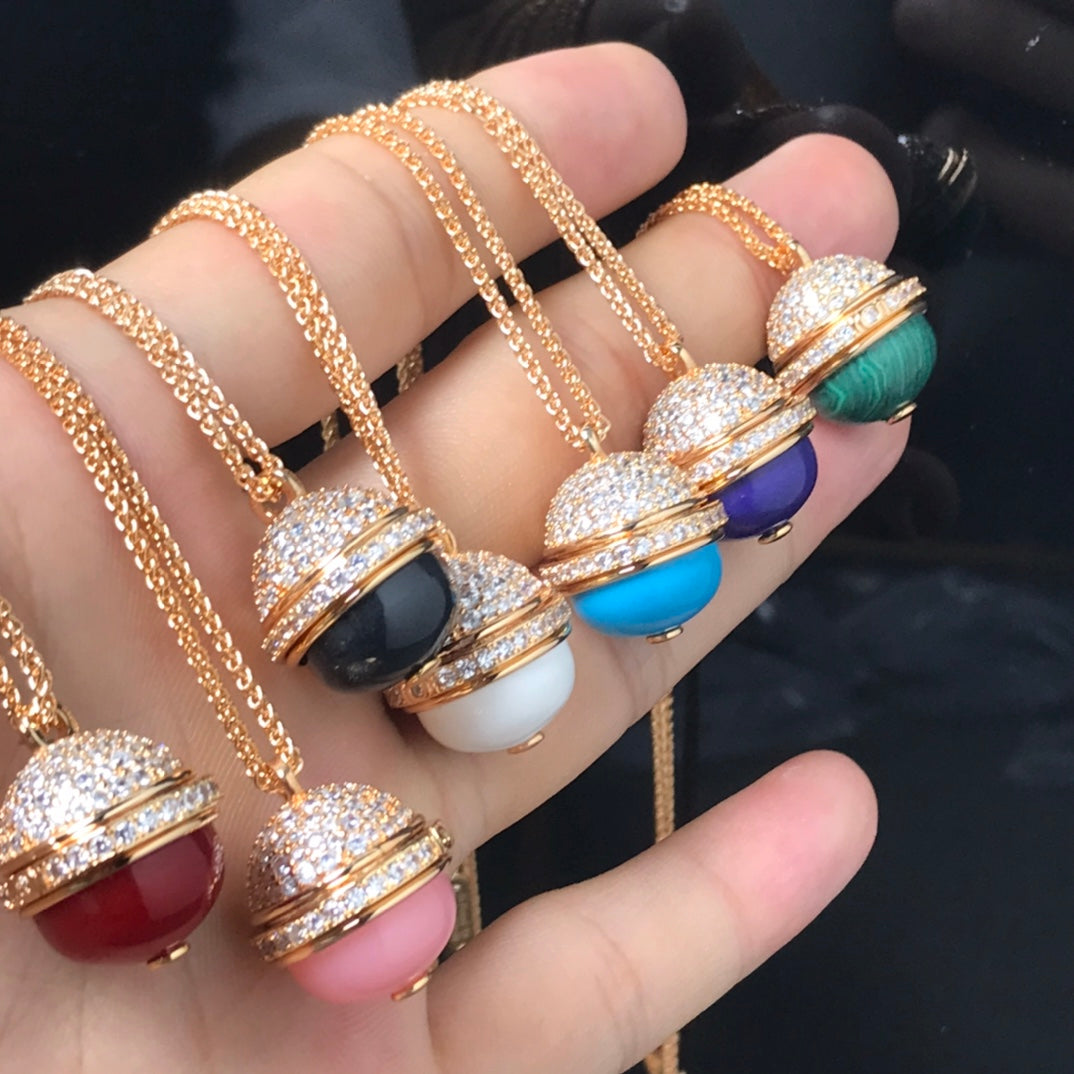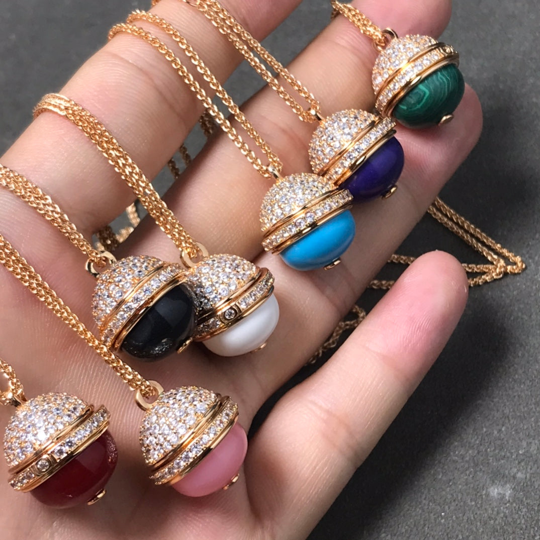 POSSEISSION DIAMOND PINK GOLD MALACHITE NECKLACE