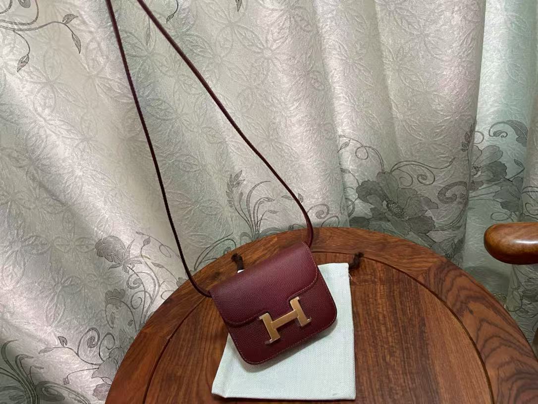 HM CONSTANCE 18 DARK RED EPSOM GOLD HARDWARE