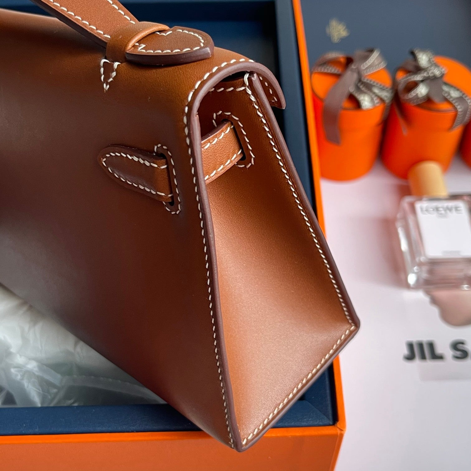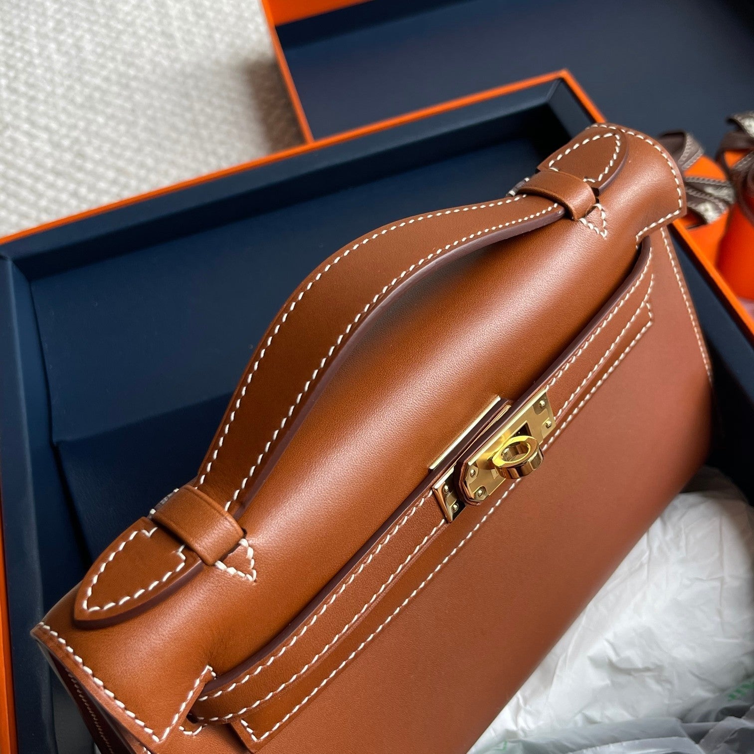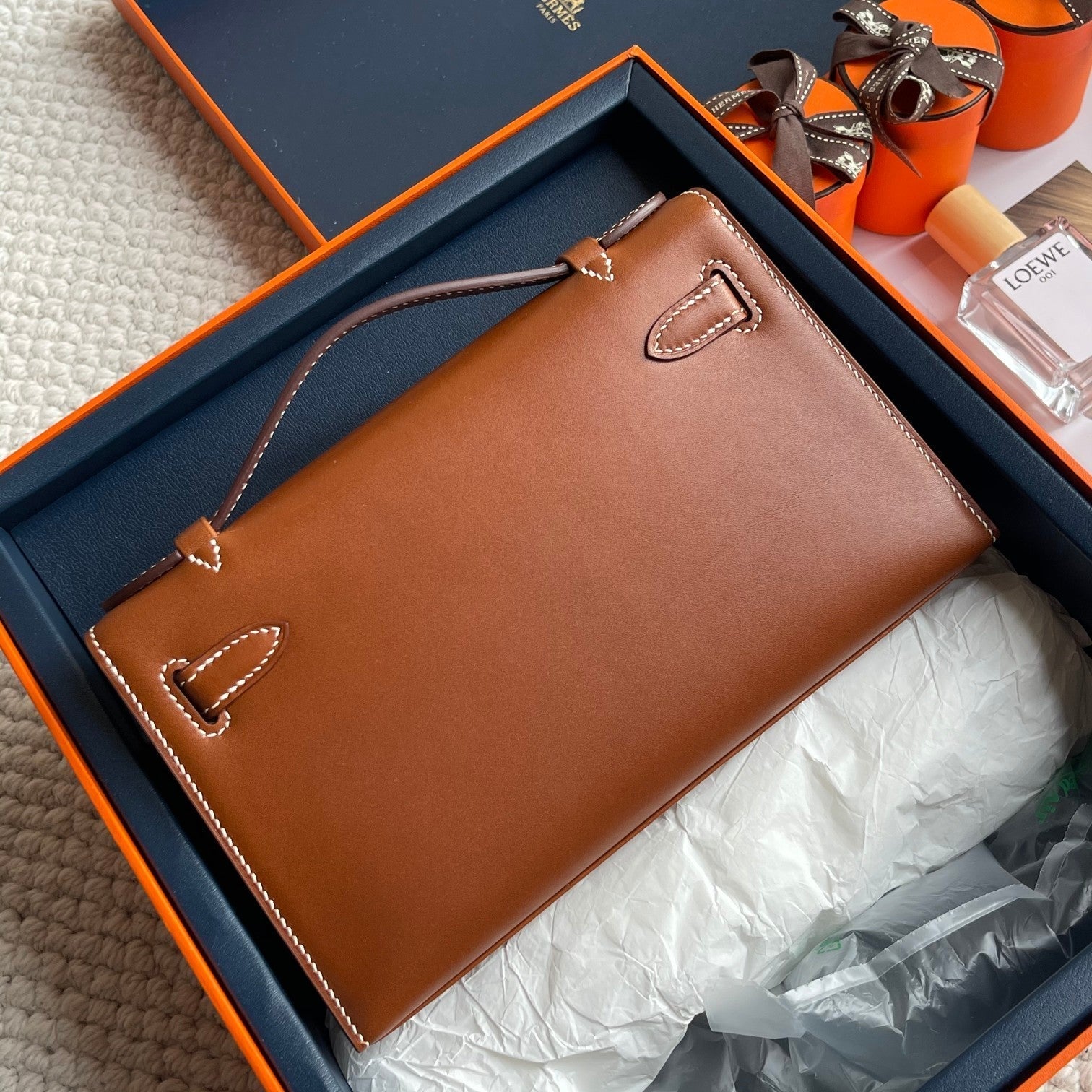 HM Kelly Pochette 22cm Dark Brown Swift Gold Hardware