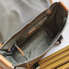 MESSENGER BAG 20 IN KHAKI GREEN RE-NYLON AND BROWN CALFSKIN TRIM