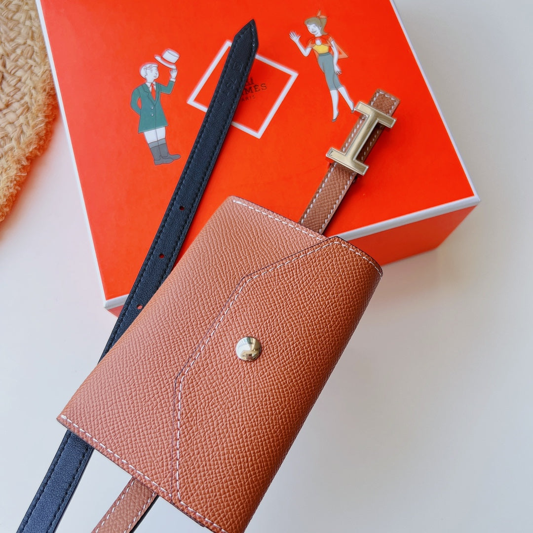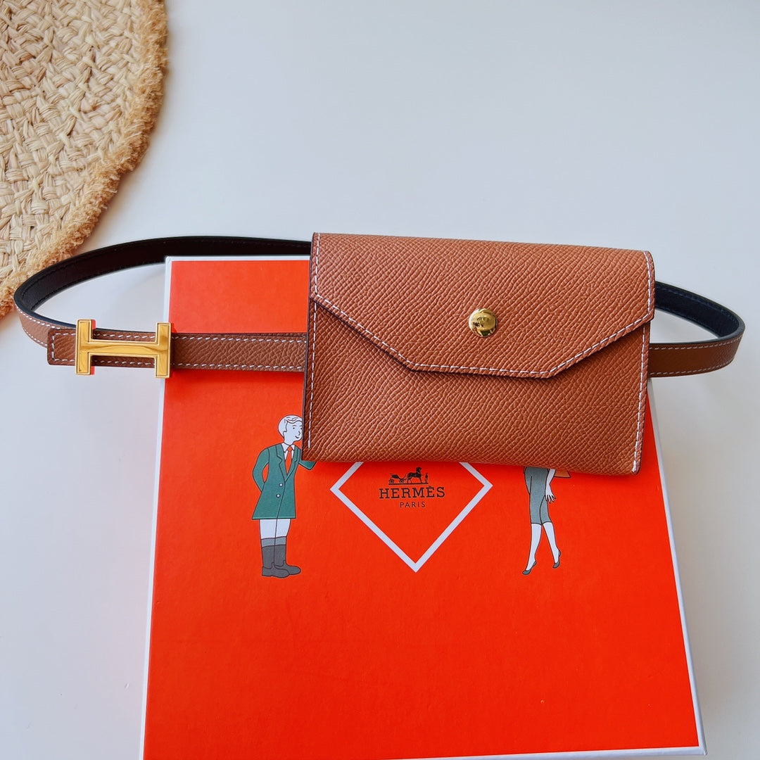 hm kelly belt 18mm with kelly pocket brown epsom silver hardware