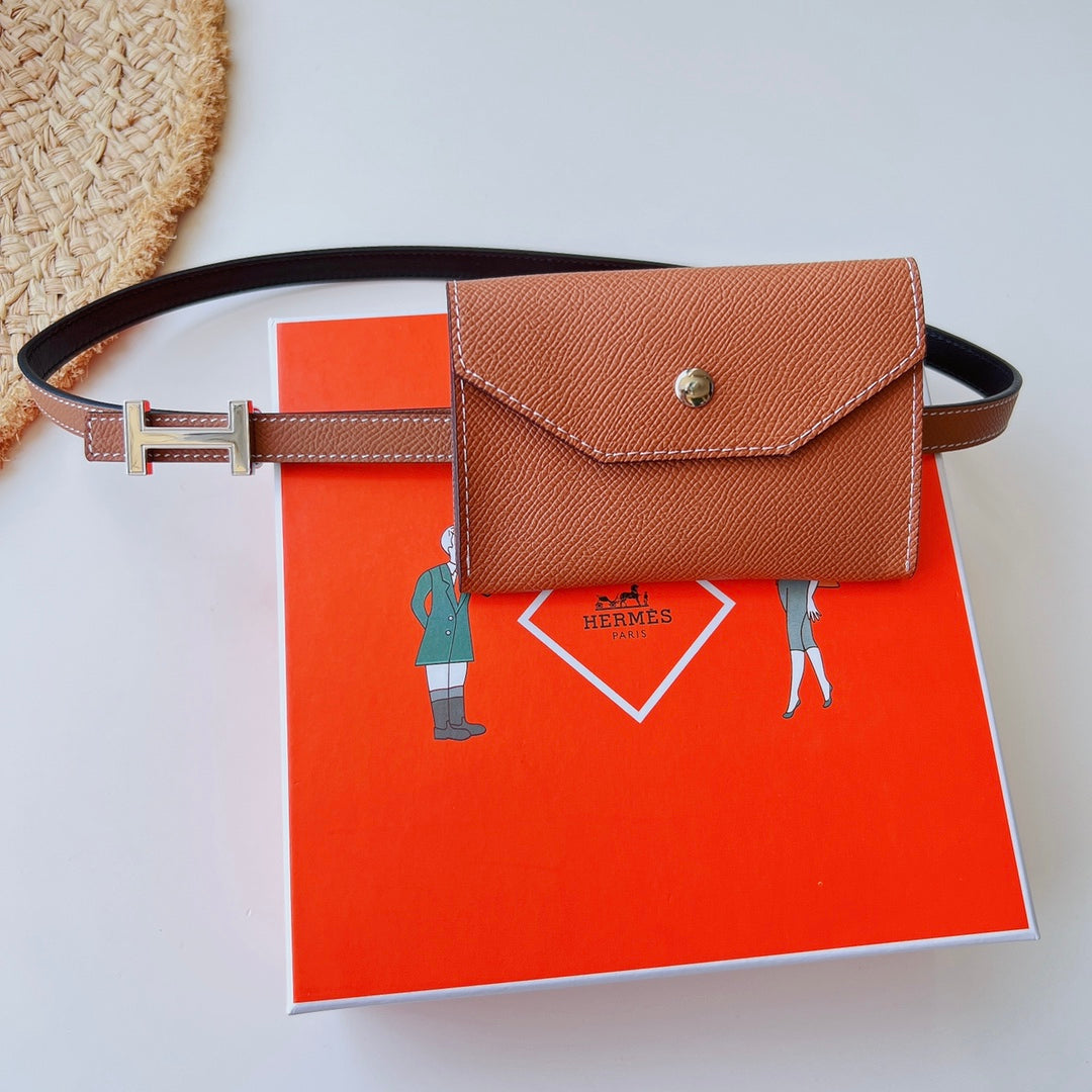 hm kelly belt 18mm with kelly pocket white epsom silver hardware