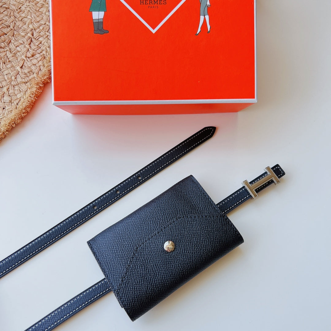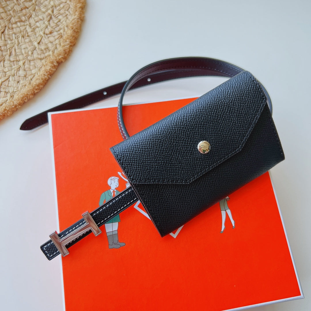 hm kelly belt 18mm with kelly pocket black epsom silver hardware