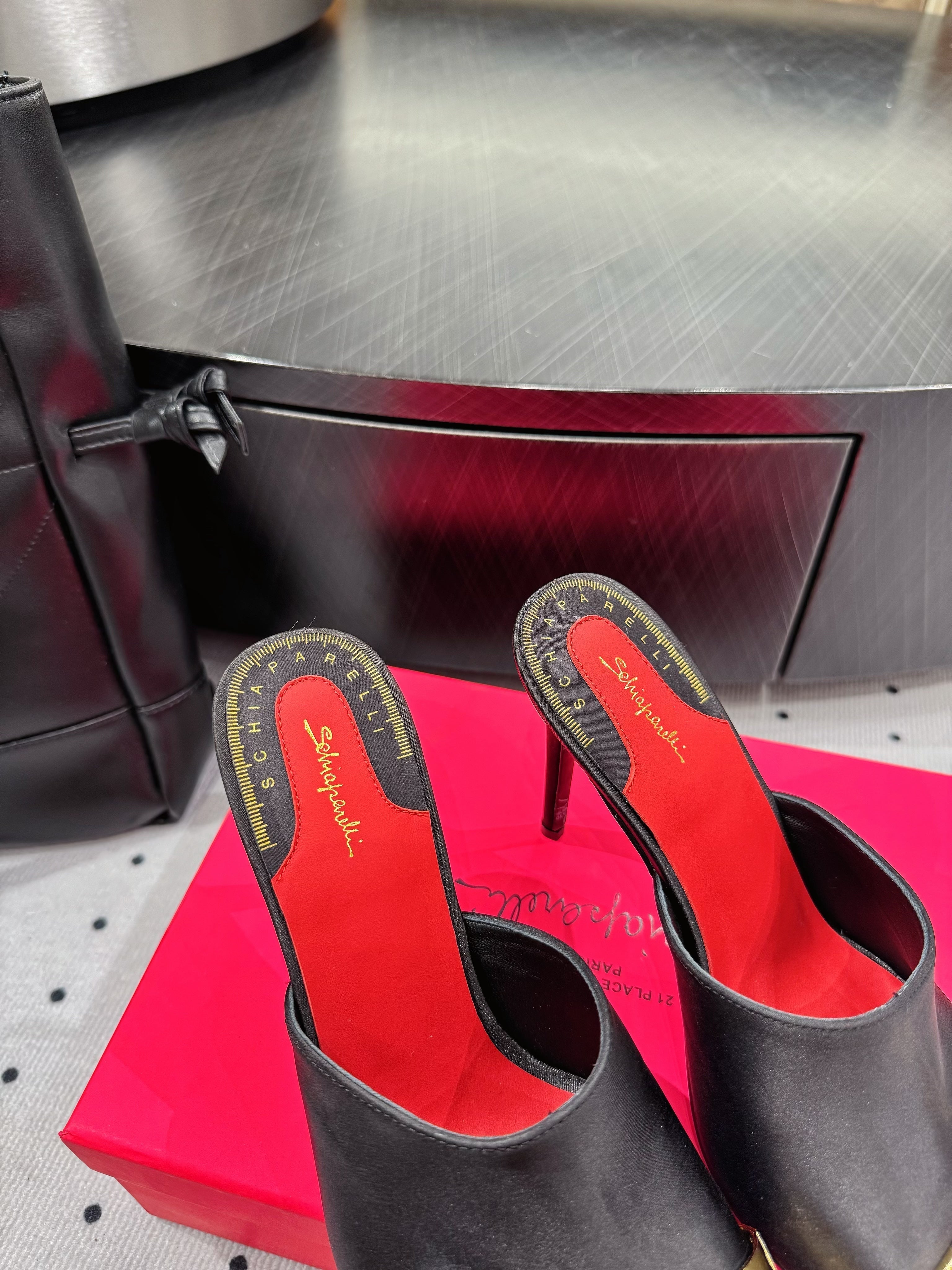 CL 25 Elsa Schiapar Mules Black Gold Silk 321607