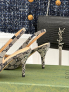 GG Horsebit Slingback 85MM Beige Black Monogram Canvas Point Toe Crystal-Embellished